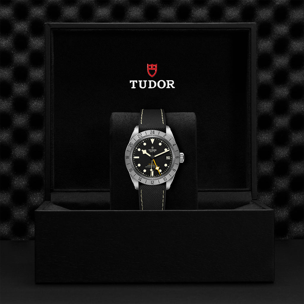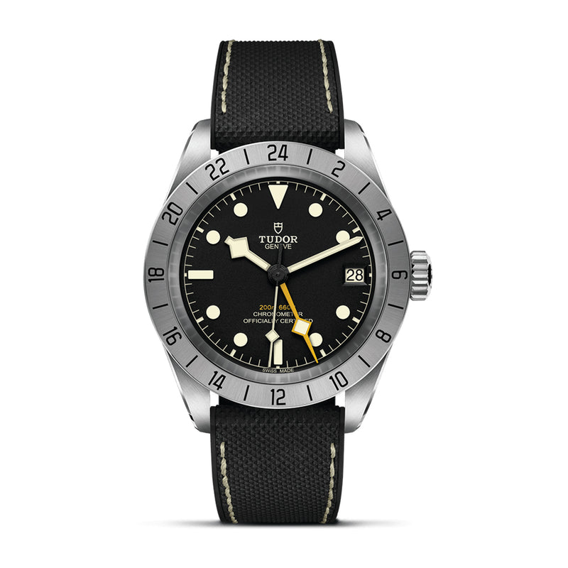 Tudor Black Bay Pro 39mm Steel Black Luminous Marker Dial Watch with a Steel Brushed Bezel on a Black Hybrid...