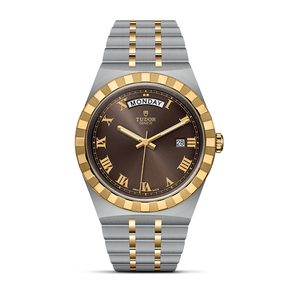 Tudor Royal Steel and Yellow Gold 41mm Brown Arabic Dial Watch with a Yellow Gold Notched Bezel on a Steel...